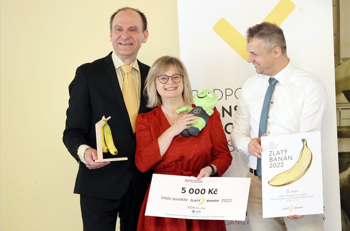 Asociace veřejně prospěšných organizací ČR (AVPO ČR) dnes odpoledne udělovala ocenění Zlatý banán, které získávají neziskové organizace za nejlepší příběh o konkrétní pomoci soukromého dárce na dobročinný účel. Bodovaly královehradecká organizace NOMIA, která provozuje psychologickou poradnu obětem domácího násilí, Aliance žen s rakovinou prsu a organizace EDA, která se věnuje rodinám dětí se zrakovým postižením.